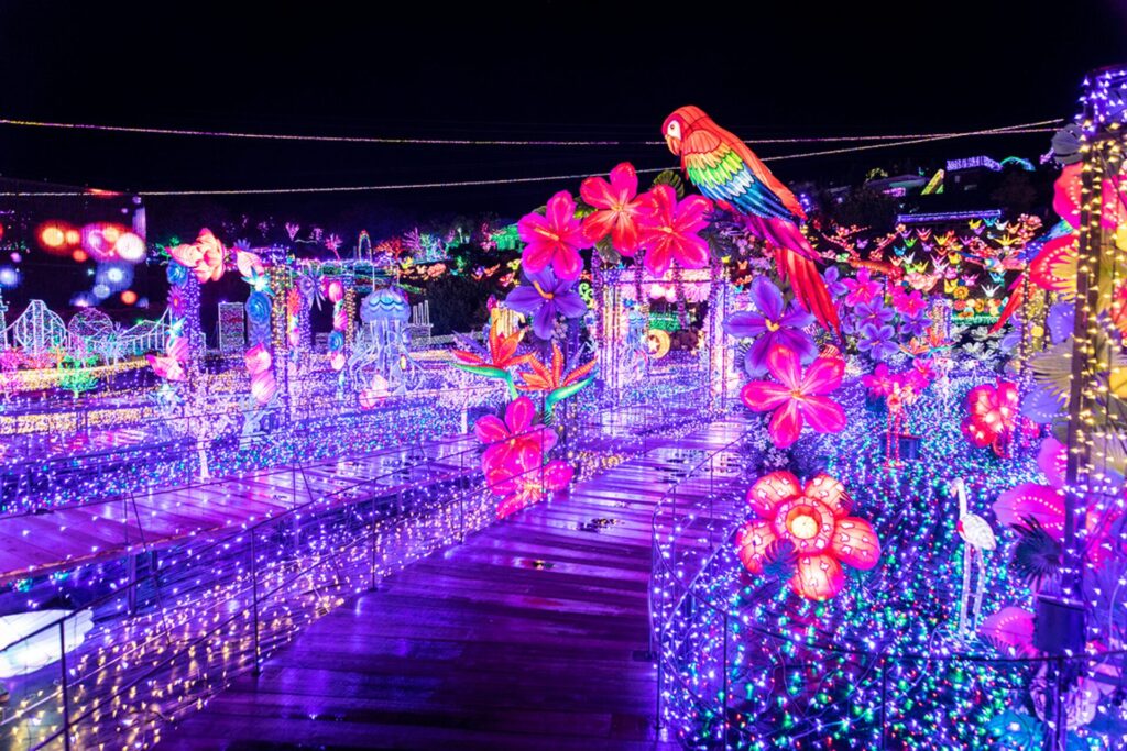 イルミネーションの上空を滑空する「ジップライン〜流星RYUSEI〜」や、七色に光るロングスライダーなど、アトラクションが非常に充実しています。